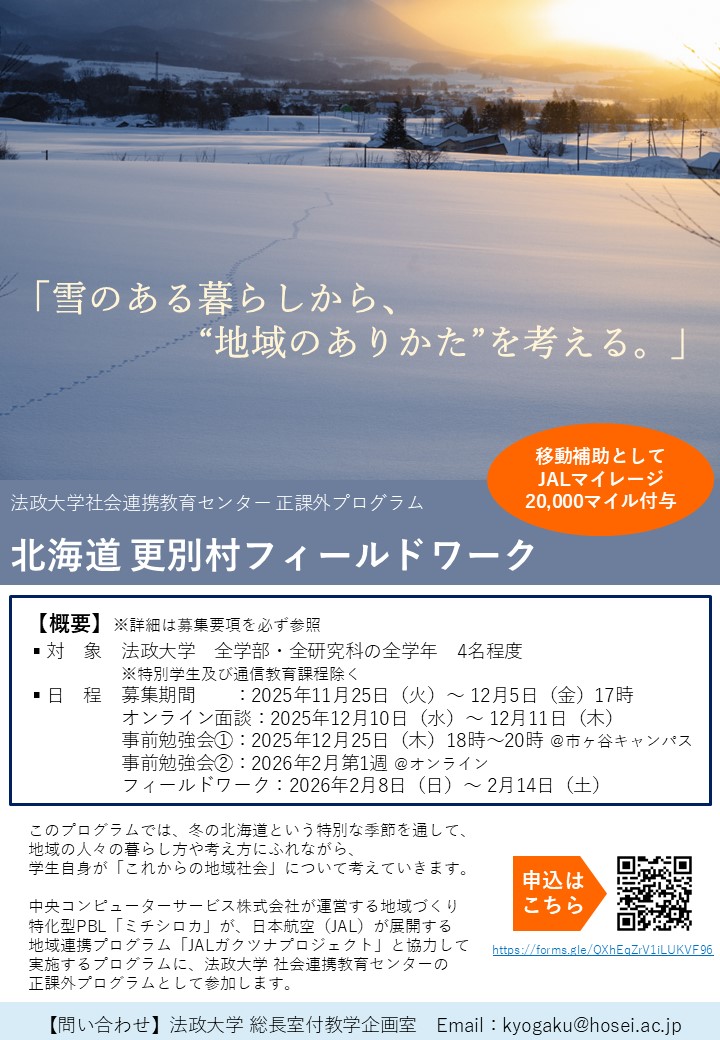 社会連携教育センターでは、北海道 更別村を舞台とした正課外プログラム「北海道 更別村フィールドワーク」を実施します。