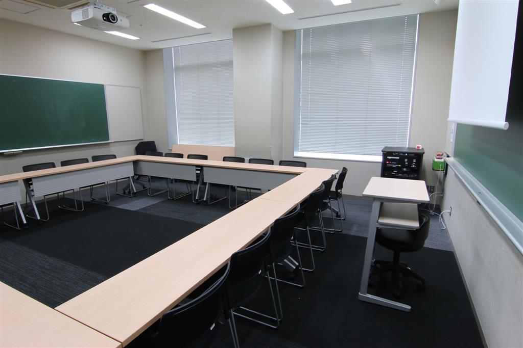 ロの字形式の場合は24人、講義形式の場合は30人まで収容可能。
